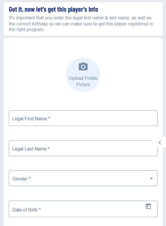This option is for all players, coaches, and key volunteer positions only.